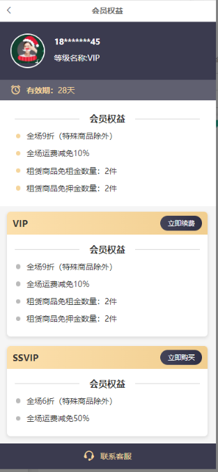 注意:不同会员等级的天数不会叠加,高级别会员买了低等级的商品不会降级,有效天数不会叠加,等同于购买普通商品。