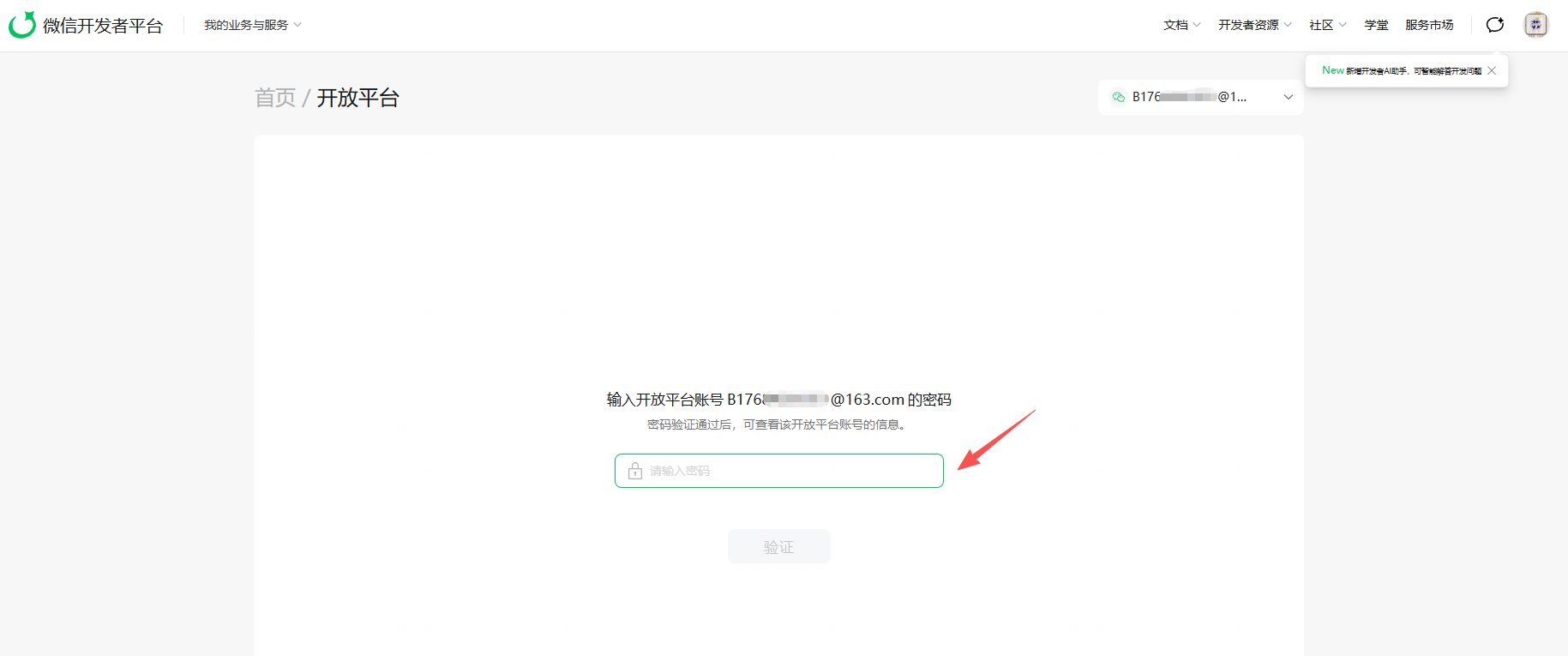 5、输入 小程序账号邮箱 或 小程序APPID 绑定: